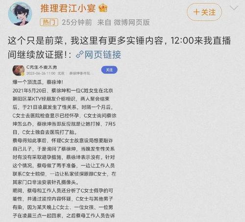 最近娱乐圈可是热闹非凡呢!蔡徐坤这个名字,相信大家都不陌生吧?这位流量小生,自从出道以来,就一直是吃瓜群众们的焦点。今天,就让我带你一起深入挖掘蔡徐坤的八卦娱乐世界,看看这位小哥哥的吃瓜日常吧!